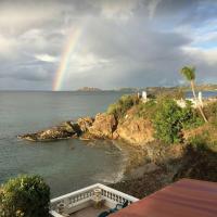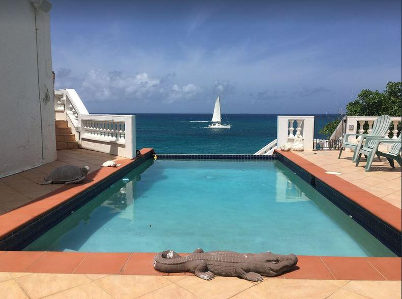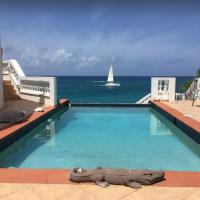 Ce bel appartement d'une chambre situé sous la maison principale a une vue imprenable sur la mer des Caraïbes depuis votre véranda couverte où vous pourrez déguster votre petit-déjeuner le matin ou dîner tout en profitant du magnifique coucher de soleil. Cet appartement dispose d'une cuisine complète, d'une chambre avec une télévision qui comprend un réseau parabolique et un accès Internet. Il a des marches qui mènent à une plage privée ou si la plage n'est pas votre truc, vous avez également accès à la belle piscine privée sur la propriété où vous pourrez vous détendre et profiter du soleil ou vous baigner dans l'eau rafraîchissante.